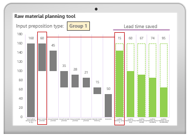 Reducing raw material lead time is often an effective way to increase speed. But doing it in a way that does not expose your company to large amount of obsolete inventory, is more difficult. Our client had a bad experience in the past which resulted in a large inventory write-off. It is not uncommon for companies to take the first step towards Raw Material planning for this very reason. Therefore, we have developed a tool that enables our clients to find the right balance between time gained and financial implications.