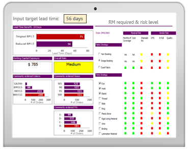 - Consider months of coverage, cost, shared colors, shared sizes, purchasing sequence, MOQ at SKU level